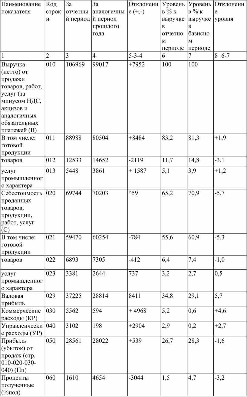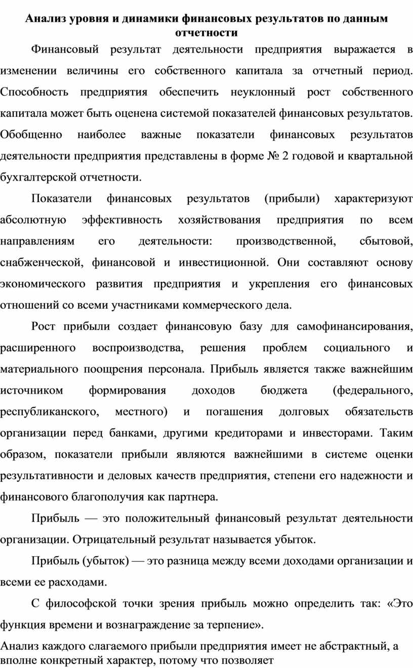 Анализ уровня и динамики финансовых результатов по данным отчетности