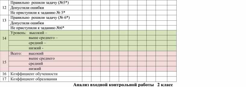 Анализ входной контрольной работы 2 класс