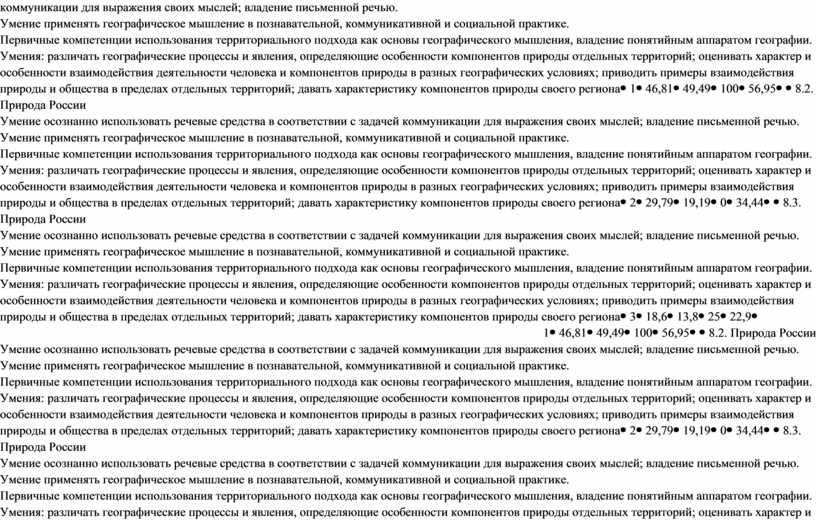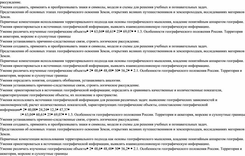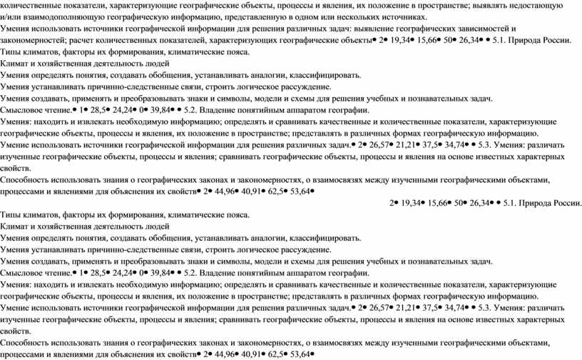 мышления, владение понятийным аппаратом географии. Умения ориентироваться в