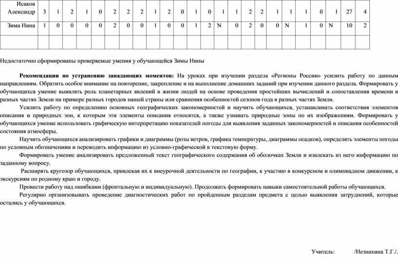 Рекомендации по устранению западающих моментов: На уроках при изучении