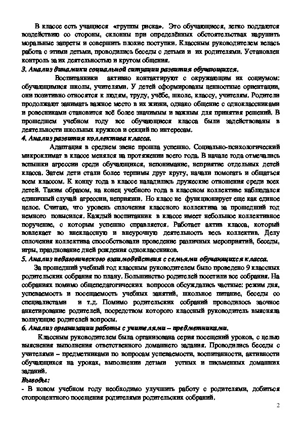 Анализ работы классного руководителя за 2017