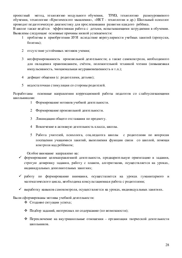 Выявлены следующие основные причины низкой успеваемости: