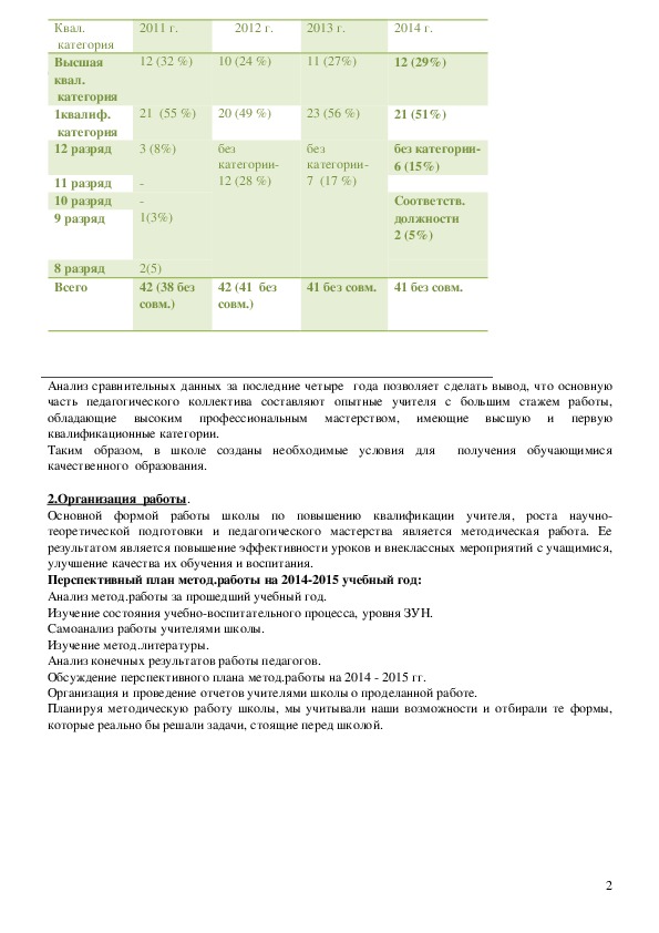 Сравнительная таблица квалификационных категорий за 2011 2014 гг.