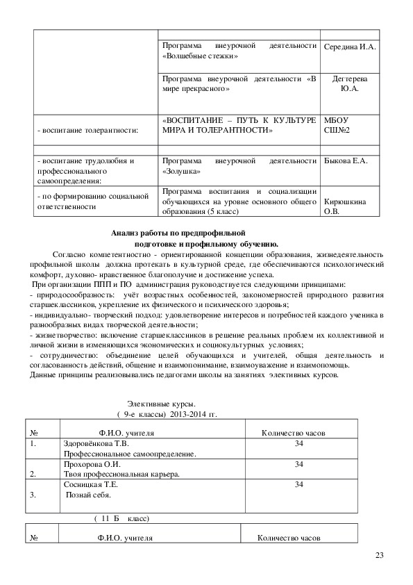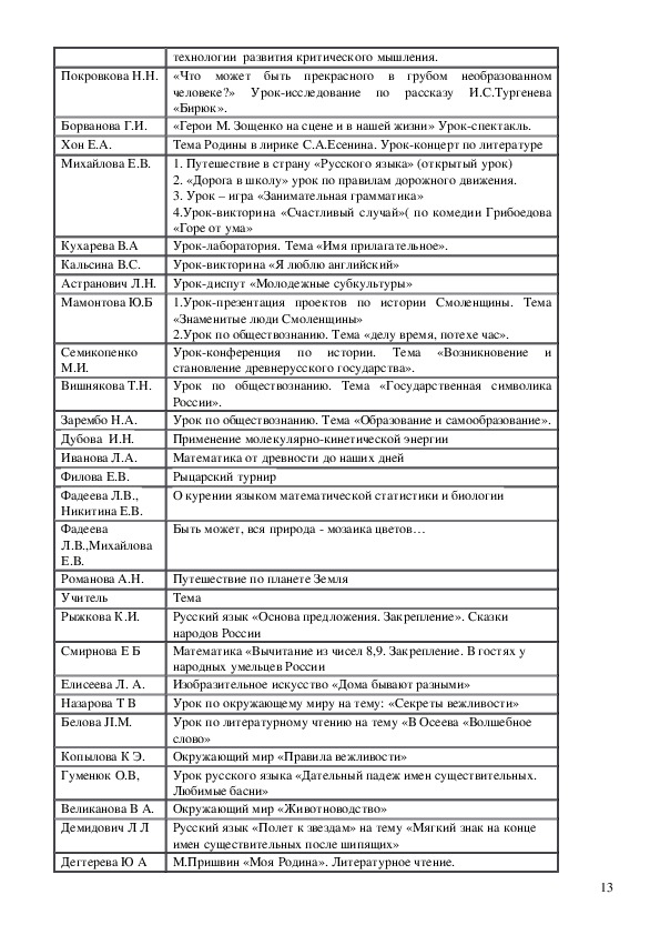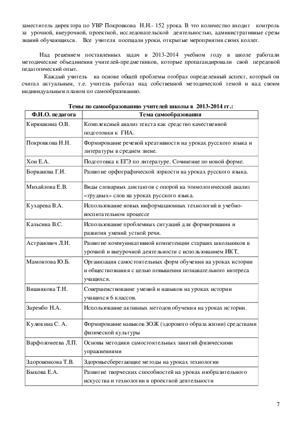 • темы по самообразованию учителей школы;