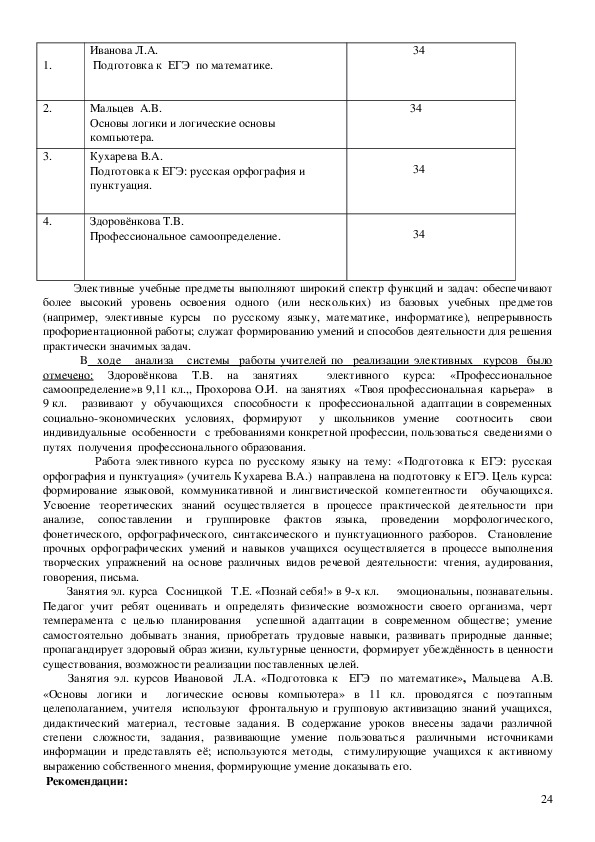 математического цикла, необходима консультационная работа с родителями;