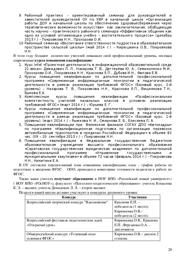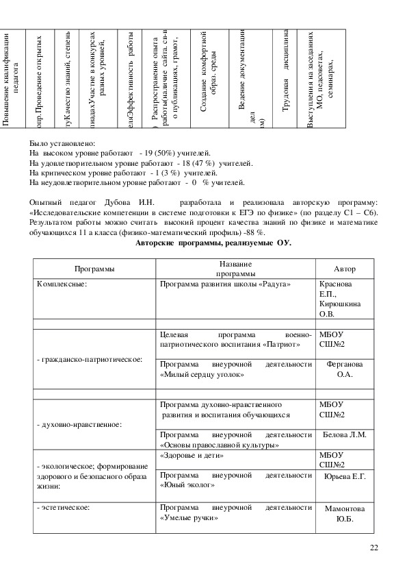 часть педагогического коллектива составляют опытные учителя с большим стажем работы,