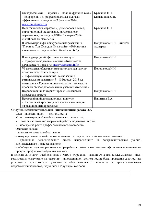 Анализ научнометодической и инновационной деятельности педагогического