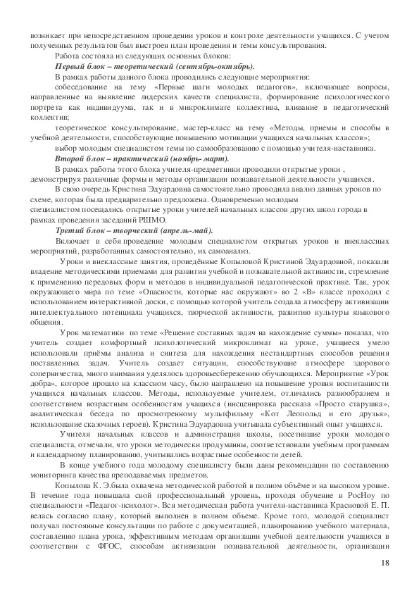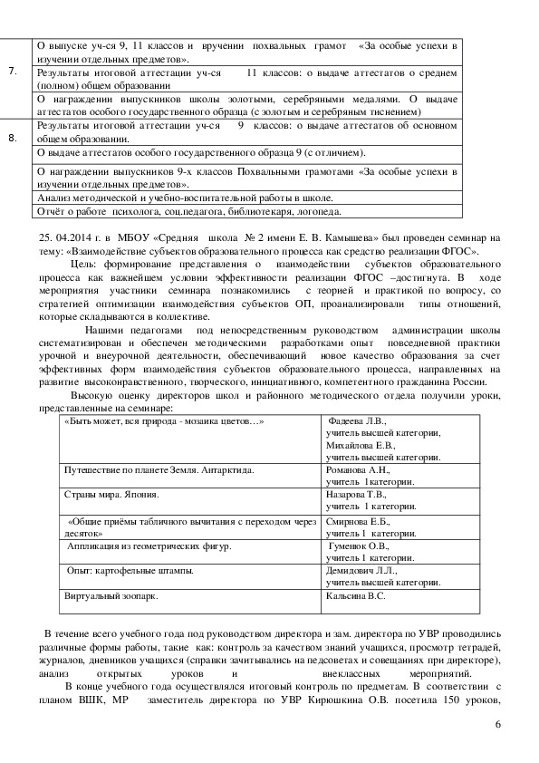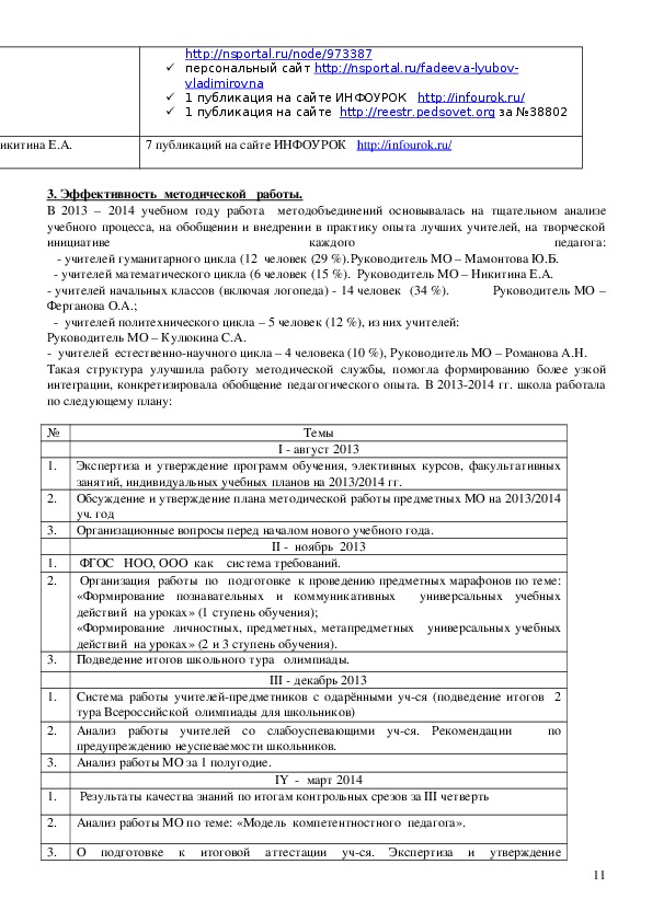 • анализ работы «Школы молодого учителя»;