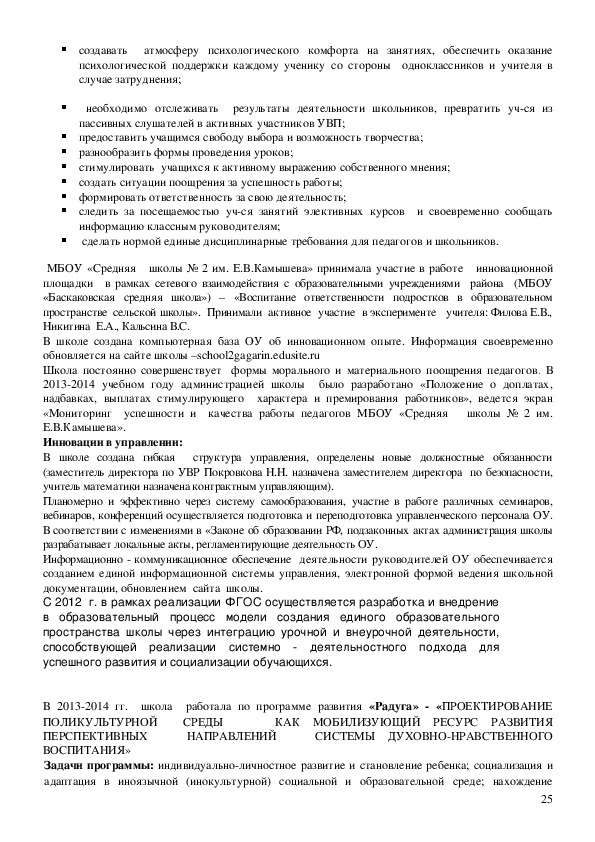 МБОУ «Средняя школы № 2 им. Е.В.Камышева» установлено:
