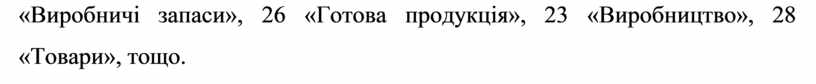 «Виробничі запаси», 26 «Готова продукція», 23 «Виробництво», 28 «Товари», тощо.