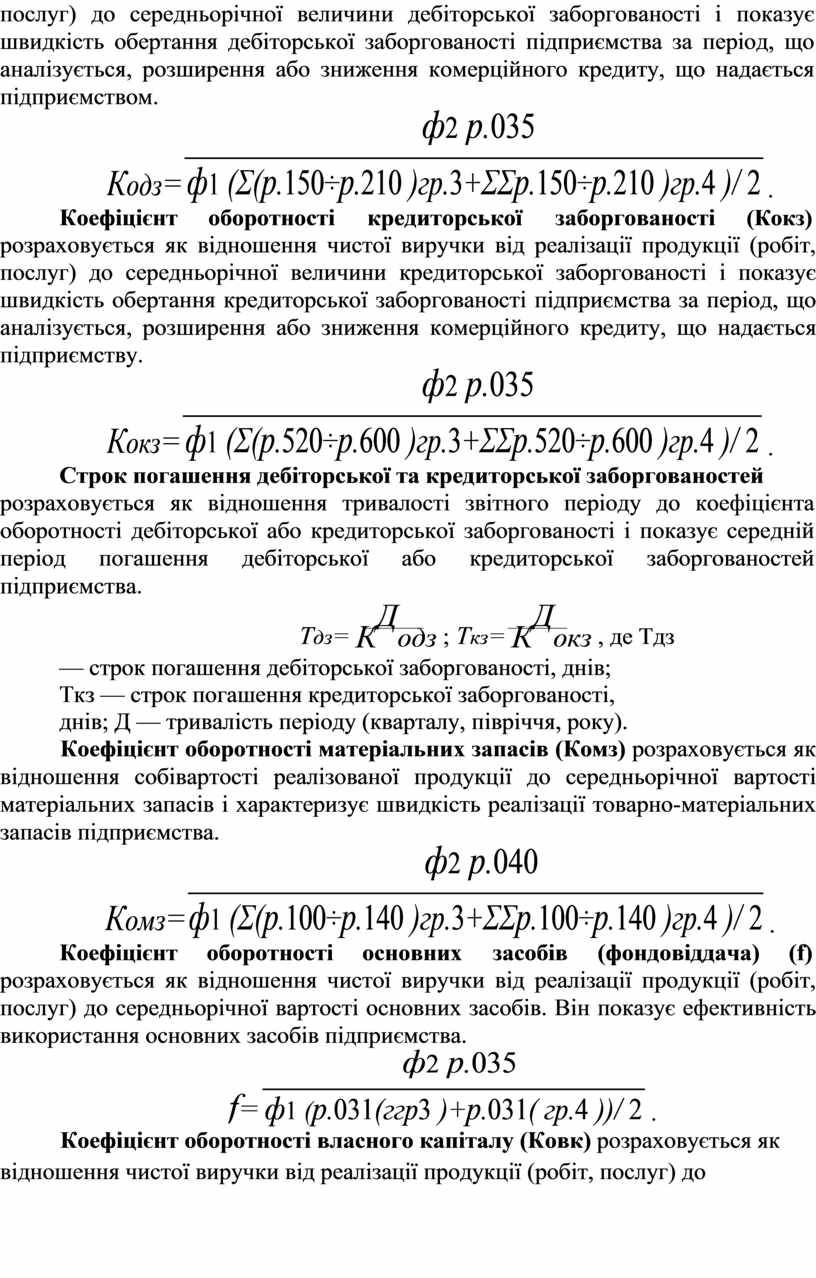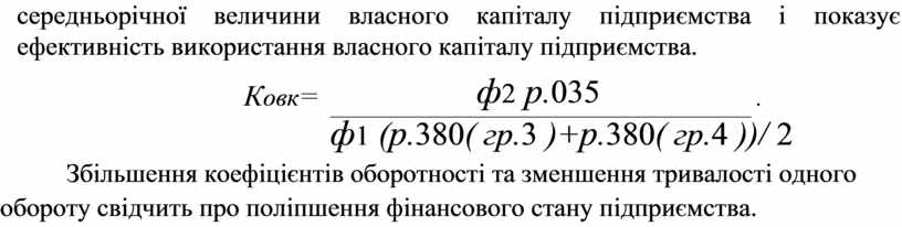 основної діяльності підприємства, що характеризується швидкістю обертання фінансових ресурсів підприємства.