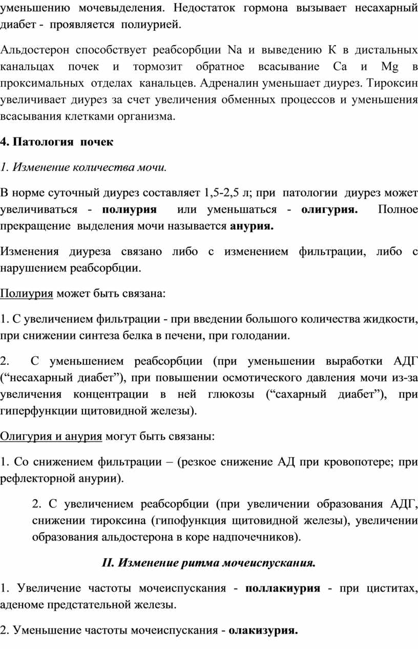 2. Уменьшение частоты мочеиспускания - олакизурия.