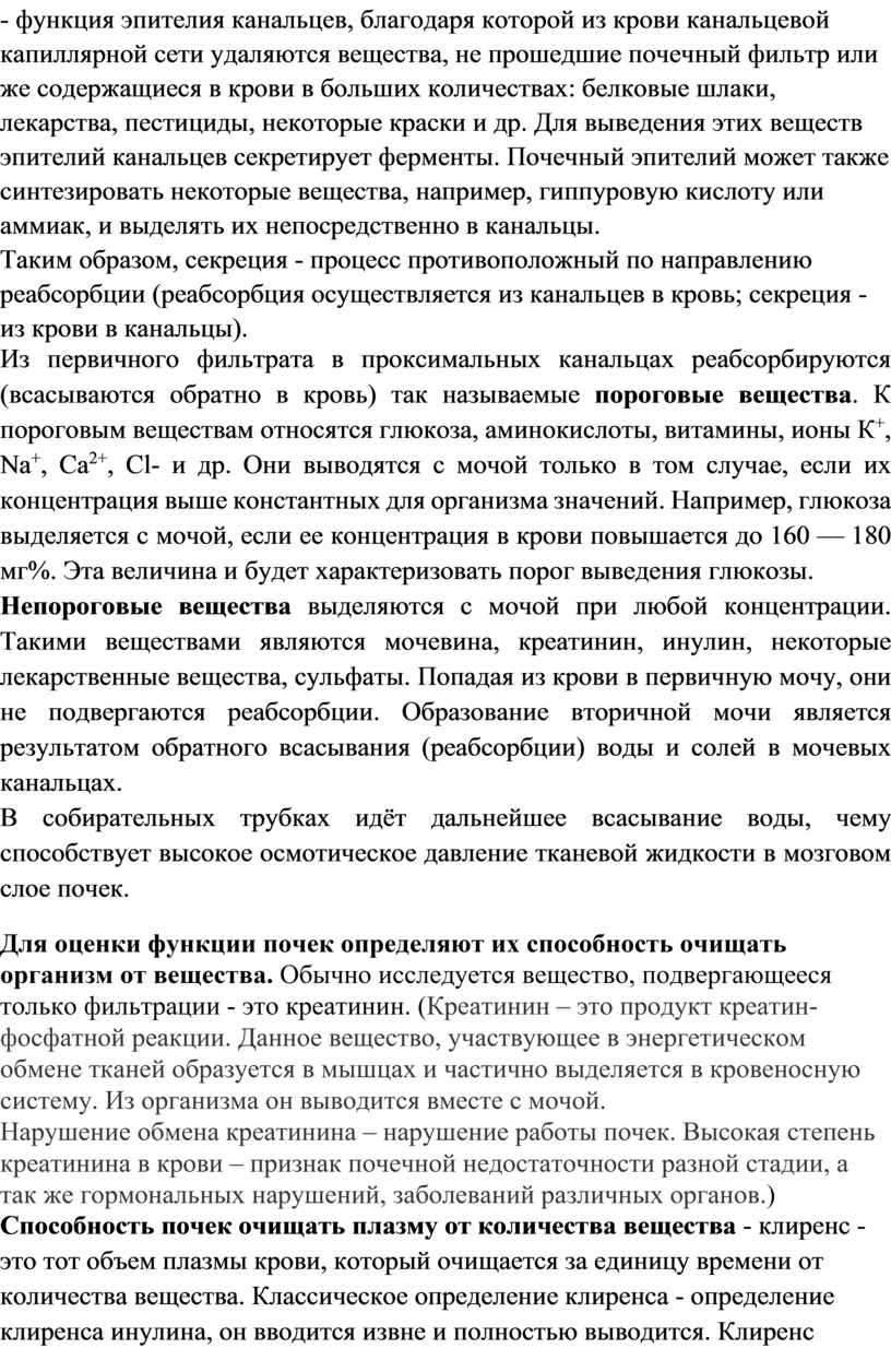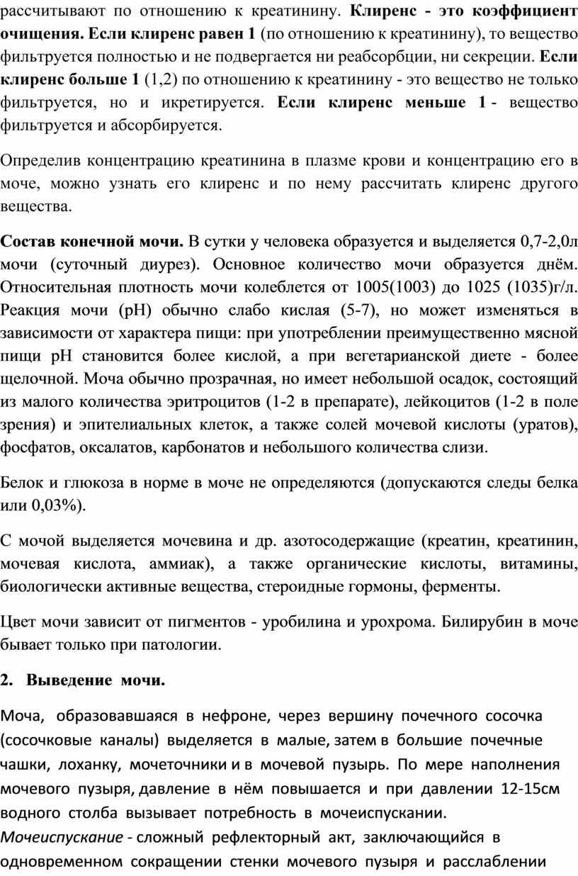 процессы, участвующие в выделении этих веществ с мочой. Если клиренс