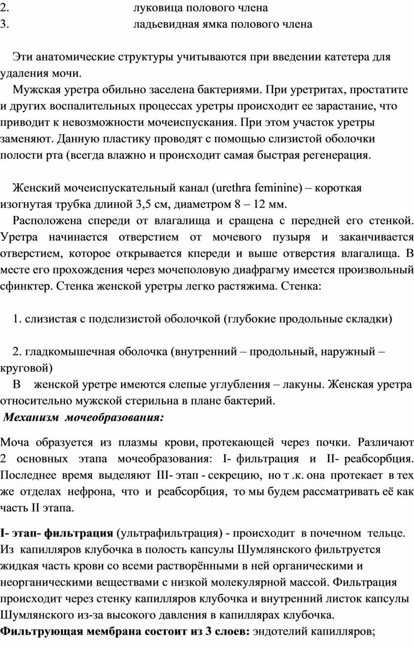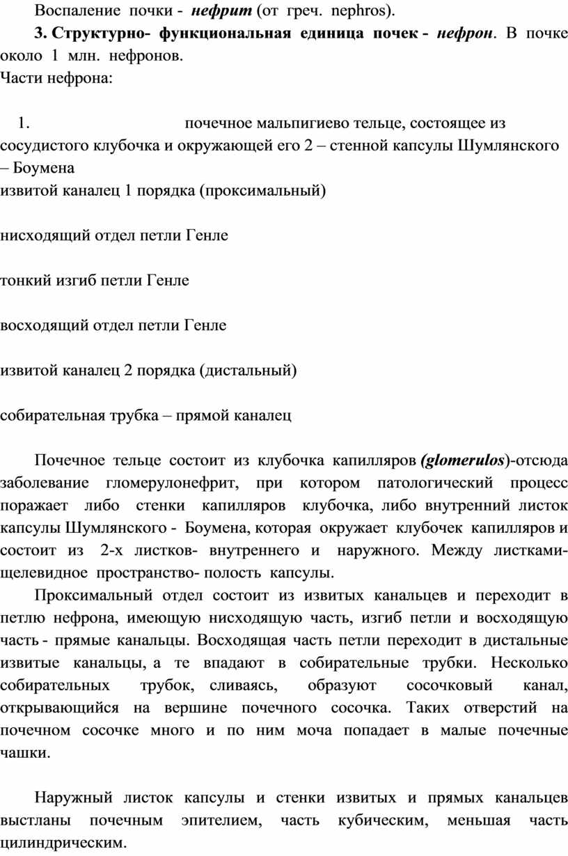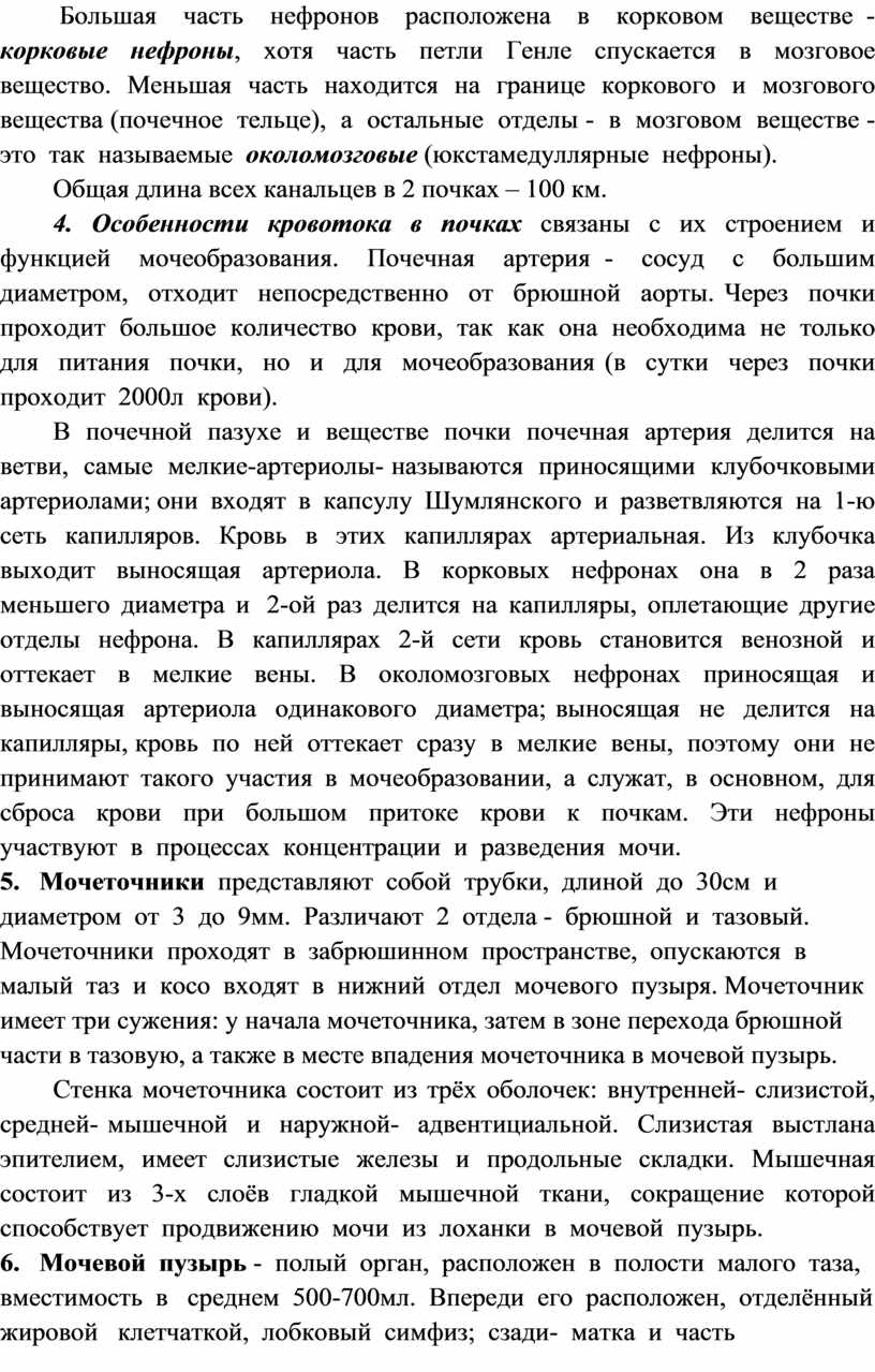 3. Перечислить отделы нефрона и путь выведения мочи после ее образования в нефроне до мочеиспускательного канала.