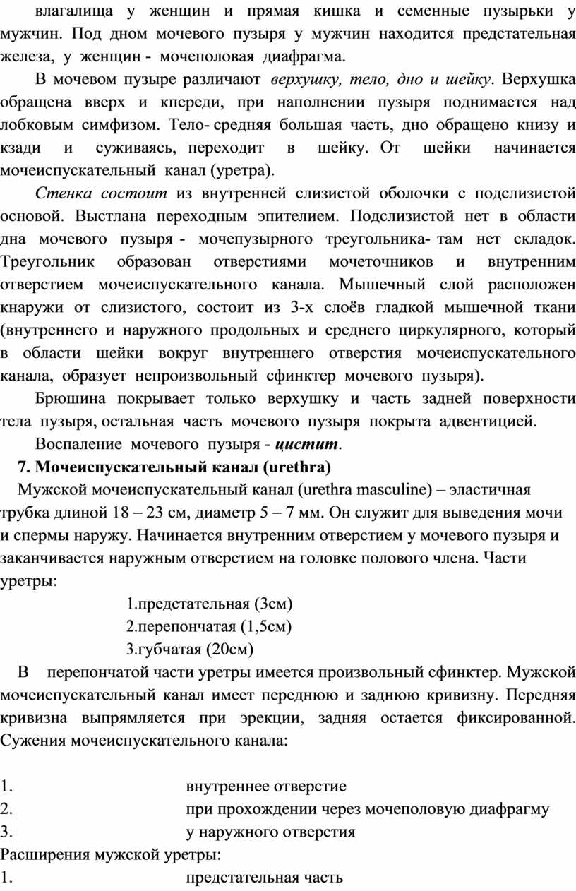 10. Назовите отделы мочевого пузыря и слои стенки? Что такое мочепузырный треугольник?