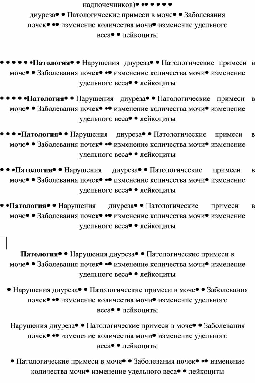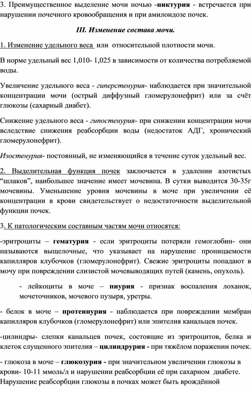 3. Преимущественное выделение мочи ночью -никтурия - встречается при нарушении почечного кровообращения и при амилоидозе почек.