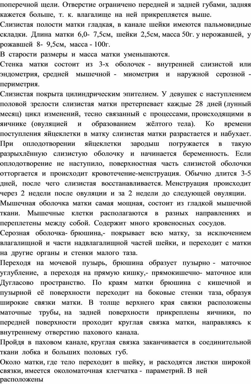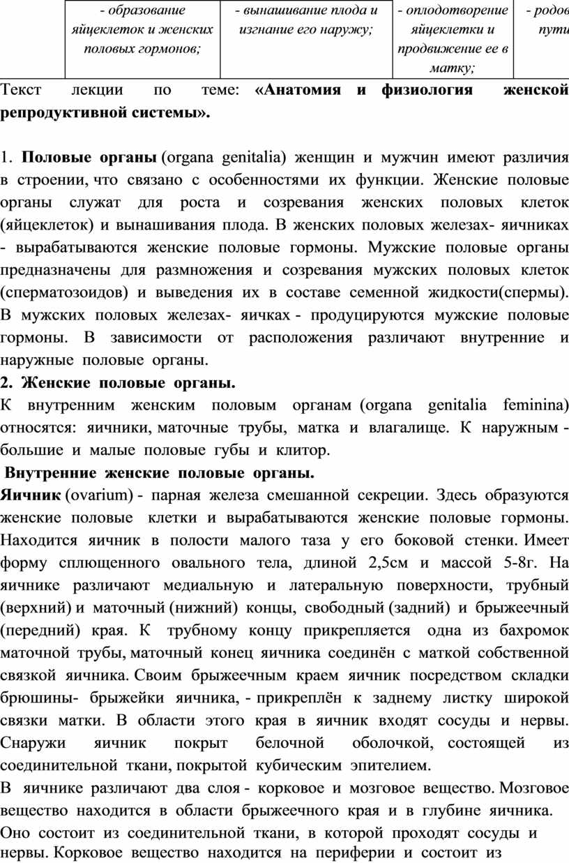 Текст лекции по теме: «Анатомия и физиология женской репродуктивной системы».