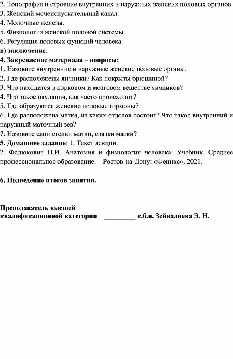 Тема занятия: Анатомия и физиология женской репродуктивной системы.