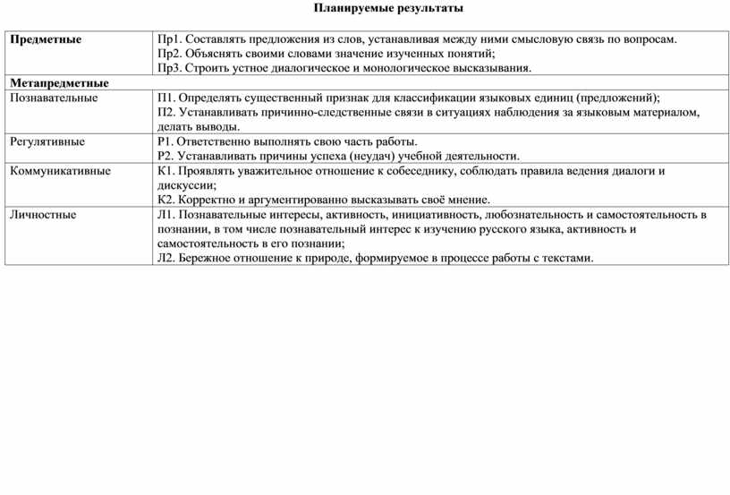 П1. Определять существенный признак для классификации языковых единиц (предложений); П2. Устанавливать причинно-следственные связи в ситуациях наблюдения за языковым материалом, делать выводы. |