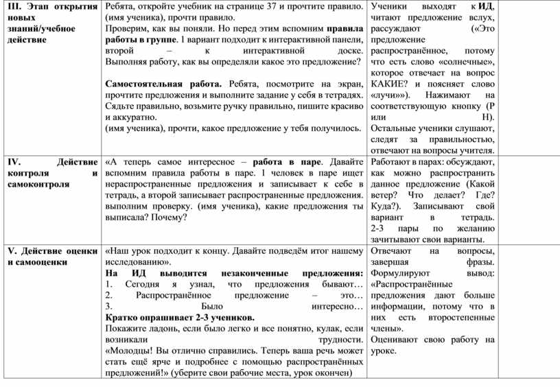 на вопросы, завершая фразы. Формулируют вывод: «Распространённые предложения
