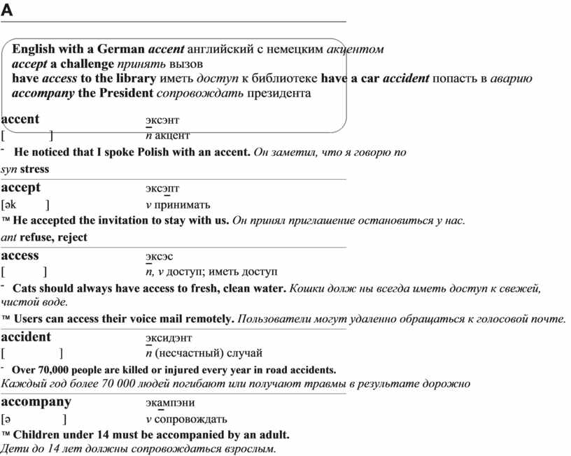 have access to the library иметь доступ к библиотеке have a car accident попасть в аварию