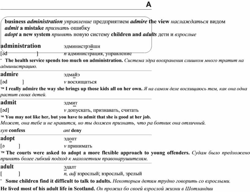 business administration управление предприятием admire the view наслаждаться видом