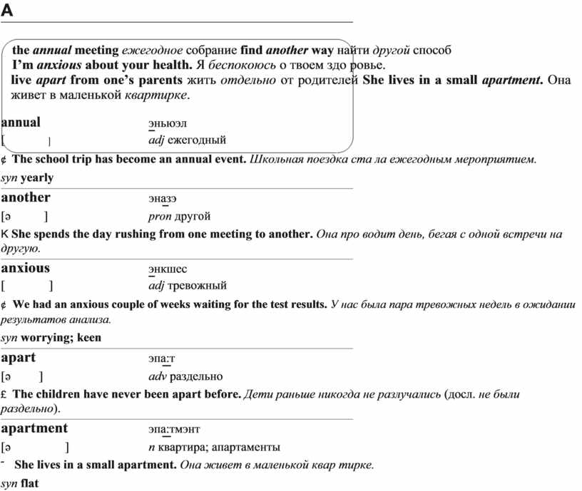 live apart from one’s parents жить отдельно от родителей She lives in a small apartment. Она живет в маленькой квартирке.