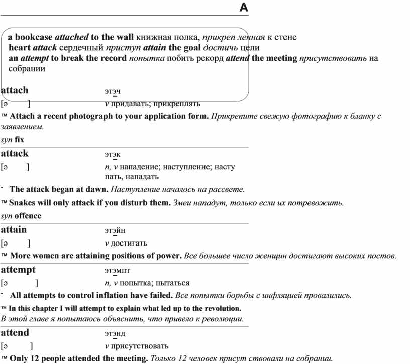 an attempt to break the record попытка побить рекорд attend the meeting присутствовать на собрании