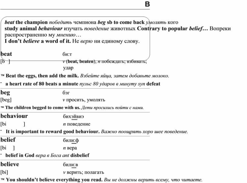 beat the champion победить чемпиона beg sb to come back умолять кого