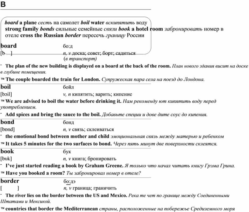 strong family bonds сильные семейные связи book a hotel room забронировать номер в отеле cross the Russian border пересечь границу России