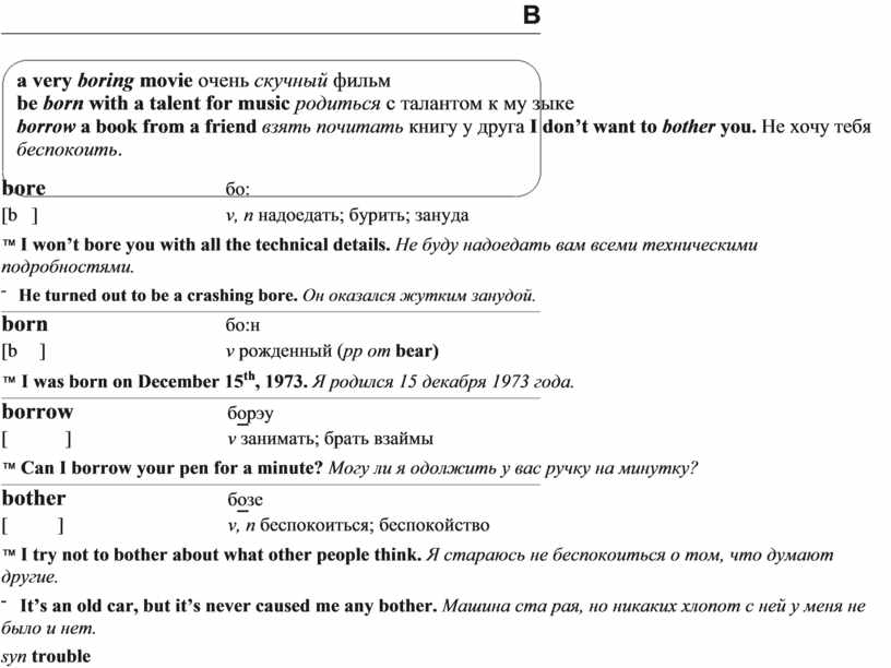borrow a book from a friend взять почитать книгу у друга I don’t want to bother you. Не хочу тебя беспокоить.