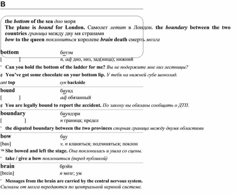 The plane is bound for London. Самолет летит в Лондон. the boundary between the two countries граница между дву мя странами