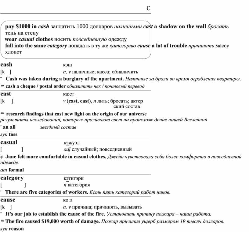 pay $1000 in cash заплатить 1000 долларов наличными cast a shadow on the wall бросать тень на стену