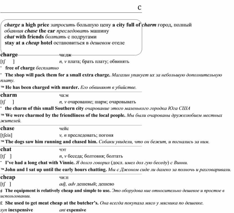 charge a high price запросить большую цену a city full of charm город, полный обаяния chase the car преследовать машину