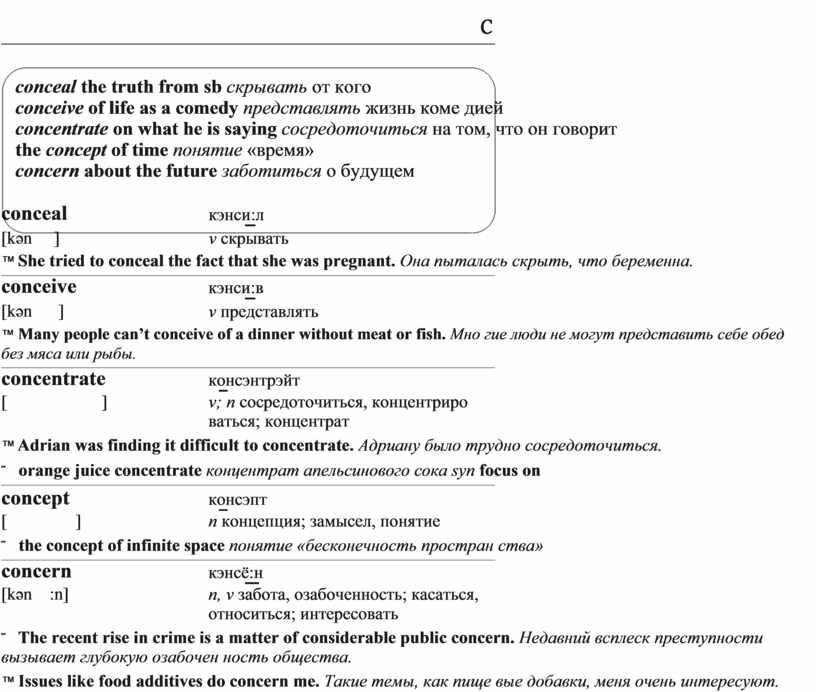™ She tried to conceal the fact that she was pregnant. Она пыталась скрыть, что беременна.