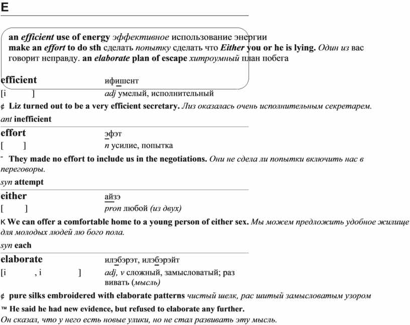 make an effort to do sth сделать попытку сделать что Either you or he is lying. Один из вас говорит неправду. an elaborate plan of escape хитроумный план побега