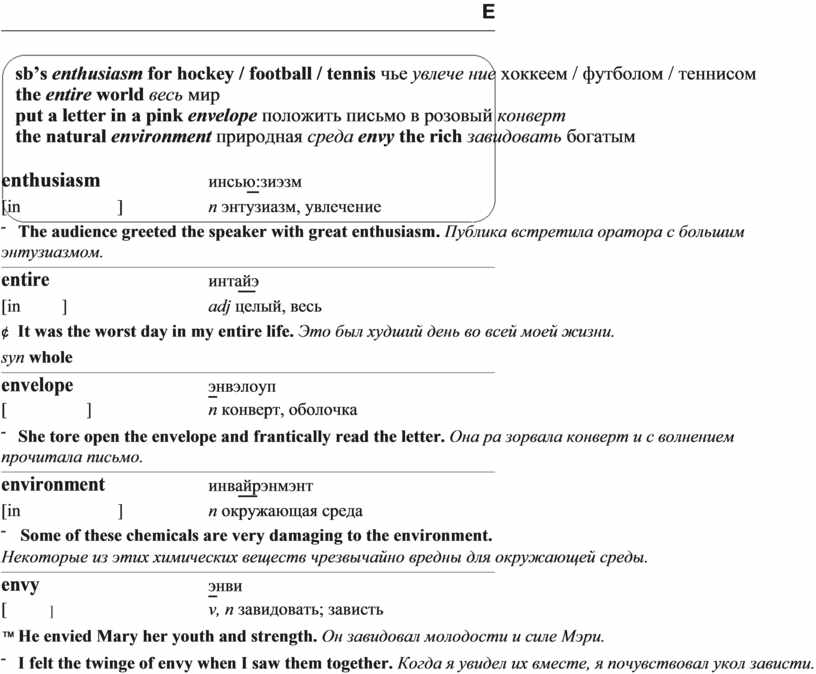 the natural environment природная среда envy the rich завидовать богатым