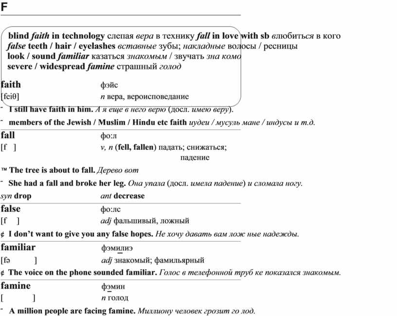 [f    ]                                            v, n (fell, fallen) падать; снижаться;