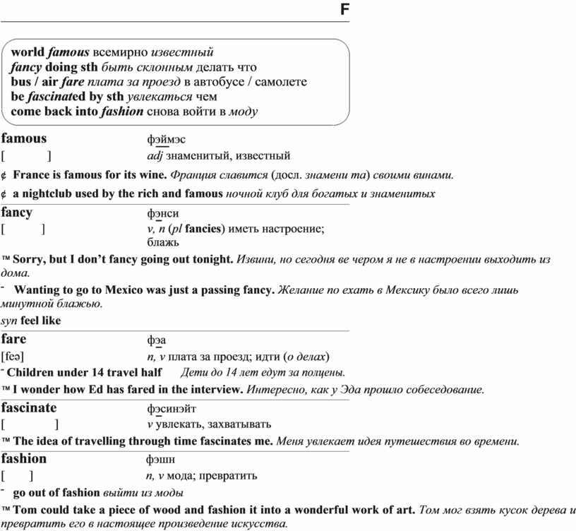 ¢ France is famous for its wine. Франция славится (досл. знамени та) своими винами.