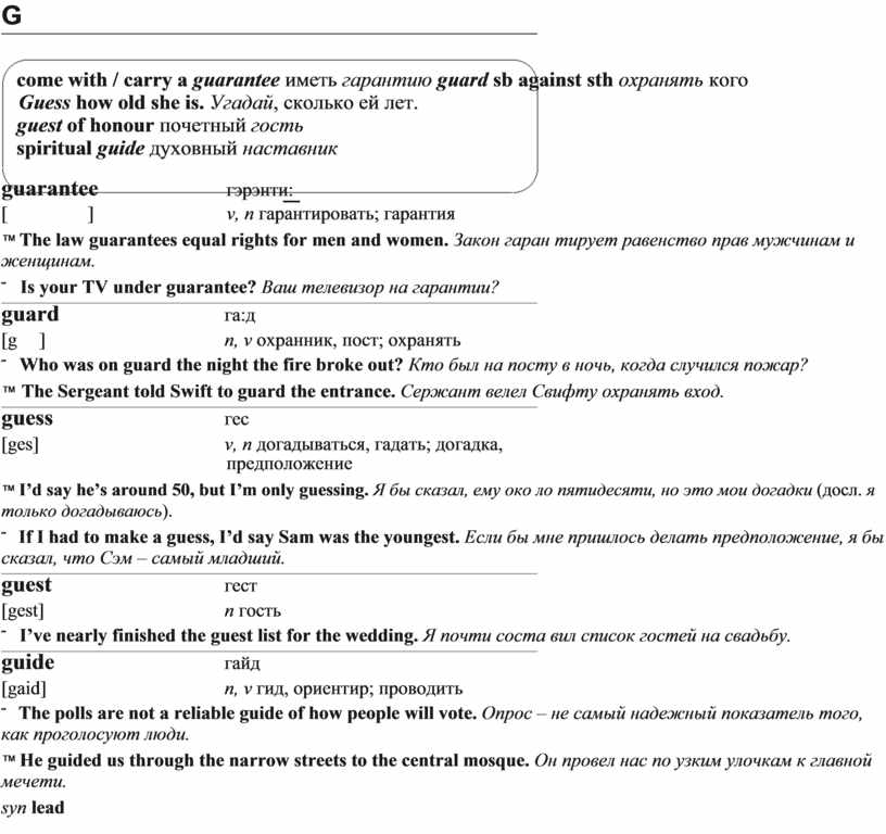 come with / carry a guarantee иметь гарантию guard sb against sth охранять кого