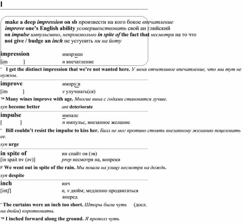on impulse импульсивно, непроизвольно in spite of the fact that несмотря на то что