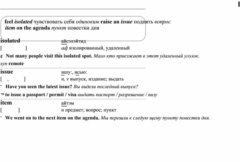 feel isolated чувствовать себя одиноким raise an issue поднять вопрос