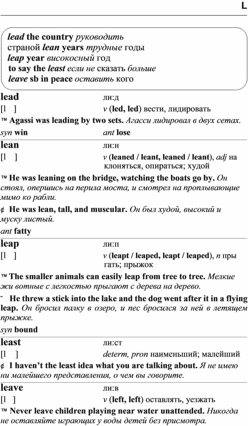 lead the country руководить страной lean years трудные годы leap year високосный год