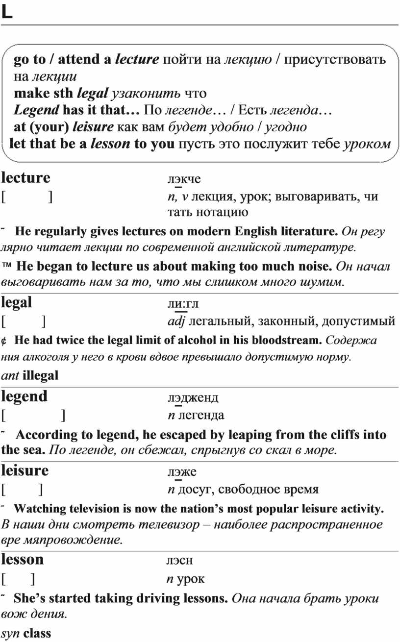Legend has it that… По легенде… / Есть легенда at (your) leisure как вам будет удобно / угодно