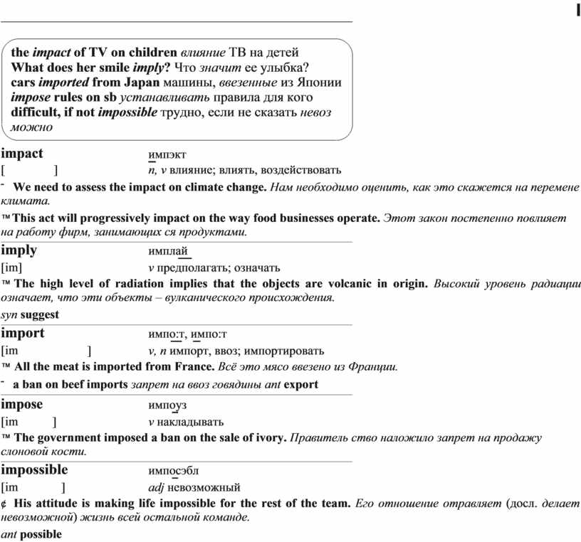 ˜ а ban on beef imports запрет на ввоз говядины ant export