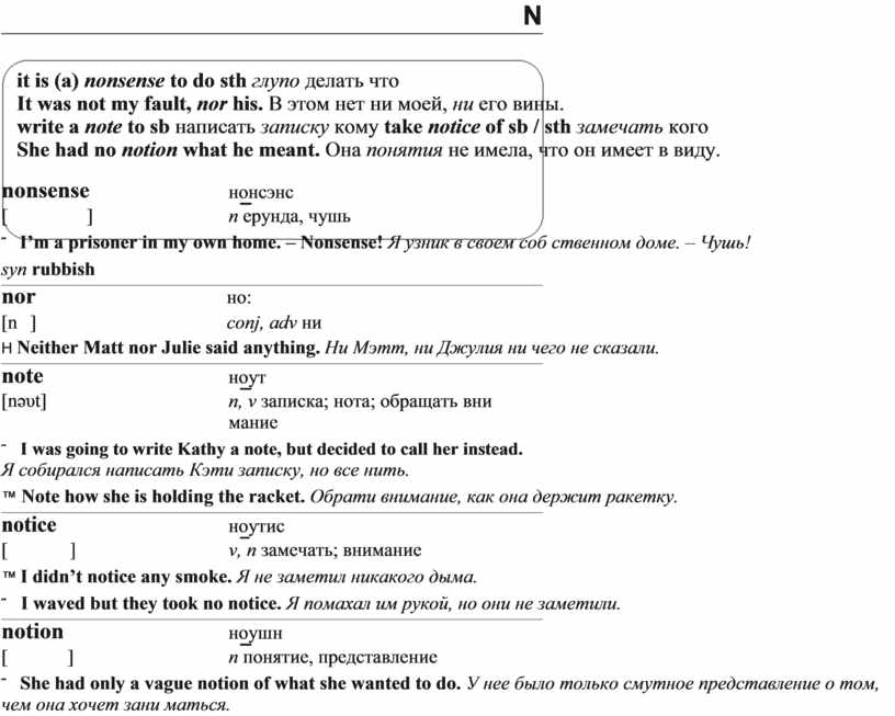 write a note to sb написать записку кому take notice of sb / sth замечать кого