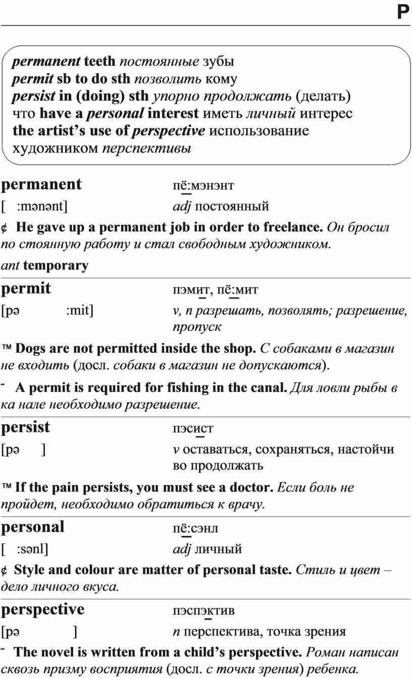 permanent teeth постоянные зубы permit sb to do sth позволить кому