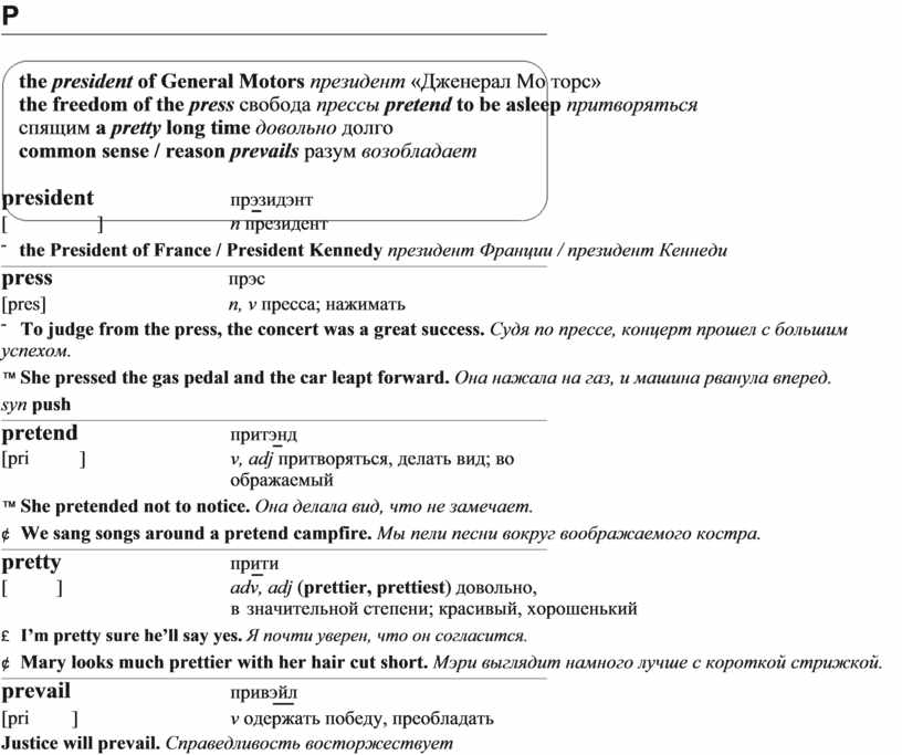 the freedom of the press свобода прессы pretend to be asleep притворяться спящим a pretty long time довольно долго