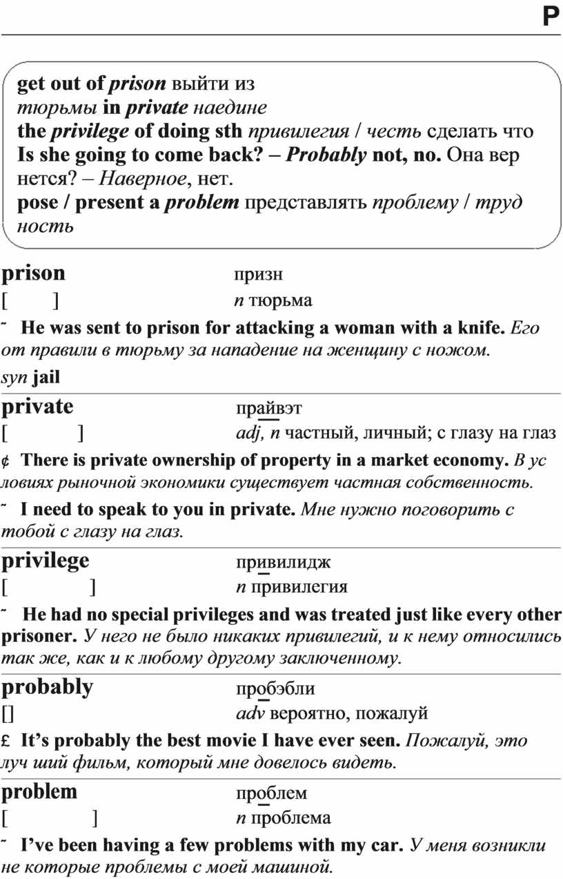 the privilege of doing sth привилегия / честь сделать что Is she going to come back? – Probably not, no. Она вер нется? – Наверное, нет.