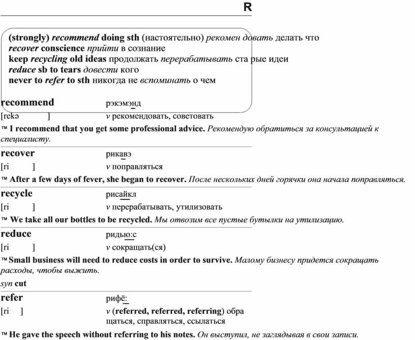 (strongly) recommend doing sth (настоятельно) рекомен довать делать что